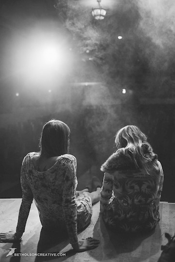 This was the culmination of The Greenroom Collection: a three-part lookbook project featuring women in Portland music. The ladies in the limelight and under the stage lights of the Aladdin Theater for this final photoshoot are part of a powerful triumvirate as timeless as the Triple Goddess and the three muses themselves—represented here as women, music and fashion.