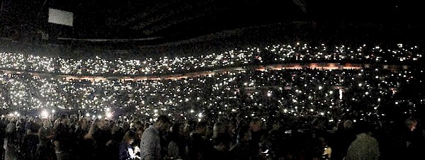 The Moda Center illuminated by cell phonesThe minute of silence ended with an abrupt cheer. The arena soon filled with applause, as the lights went out and the chords of the band’s first song rang out: that familiar strum of Tom Petty’s “Free Fallin’.”