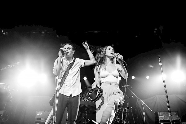 July Talk at the Roseland Theater on May 27. Photo by Sydnie Kobza—click to see more!From the very beginning of their set, the Canadian rock band brought an immeasurable energy to the stage, showing off their dance pop brand in spectacular fashion. The lead duo of Peter Dreimanis and Leah Fay showcased their onstage chemistry, leaning into each other as they harmonized. The upbeat music and onstage energy was overflowing, but an odd contrast appeared between what was seen on stage versus in the crowd below.
