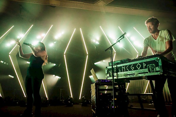 The venue was now packed with fans awaiting the arrival of Amelia Meath and Nick Sanborn. They didn’t have to wait too long, as the lights soon dimmed down and Sanborn took his place behind the boards, moving straight into their new album’s opening track, “Sound.”