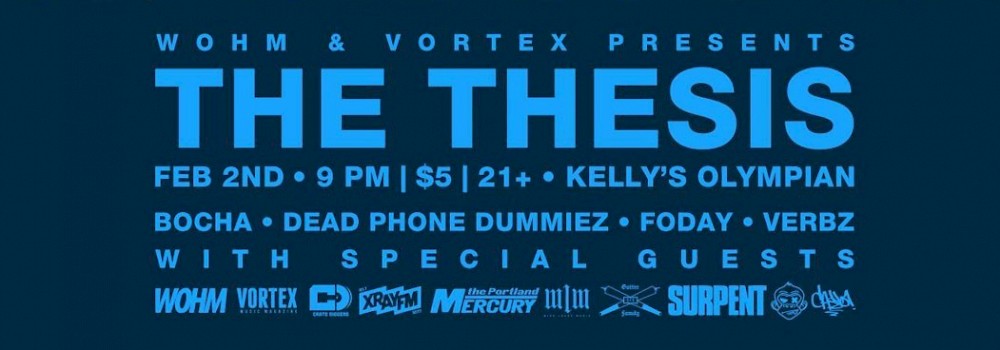 In conjunction with We Out Here Magazine, Vortex is proud to present The Thesis. The monthly hip-hop showcase known for packing out the place returns on First Thursday with another blazing bill of local beat slingers and rhyme slayers. Just $5, show up early—come nod your head to this!