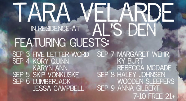 Self-proclaimed diva folk artist Tara Velarde has put together a stacked lineup for her upcoming residency. Over the course of seven nights, a diverse menagerie of Portland artists will join her including members of Portland Cello Project, Moorea Masa & The Mood, Crow and the Canyon, as well as several other stapes of the local scene. Her bold and beautiful vocals are full of heart and a mix of folk, pop, blues and rock while her guests will birng even more genres to the table. See below the complete lineup of special guests each night.