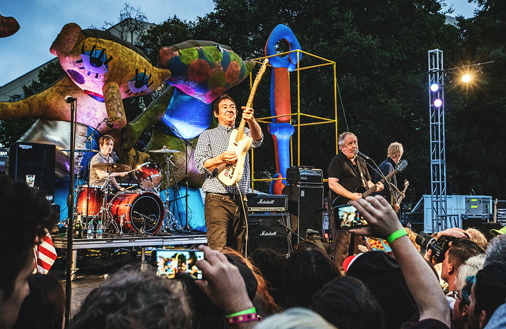 As the daylight faded, Butt City was once again feeling the congestion in anticipation for two of the most revered punk bands, X and Buzzcocks. John Doe, Exene Cervenka, Billy Zoom and DJ Bonebrake may be in their 60s, but their energy commanded the most crowd surfing of the weekend. Kicking off with “Beyond and Back,” the Californians effortlessly executed restless anthems like “Your Phone is off the Hook But You're Not” and “Los Angeles,” closing the set with “Soul Kitchen.” Buzzcocks continued the raucousness established by X, commencing with “Boredom” and weaving through fan favorites like “Fast Cars,” “Orgasm Addict” and “What Do I Get.”