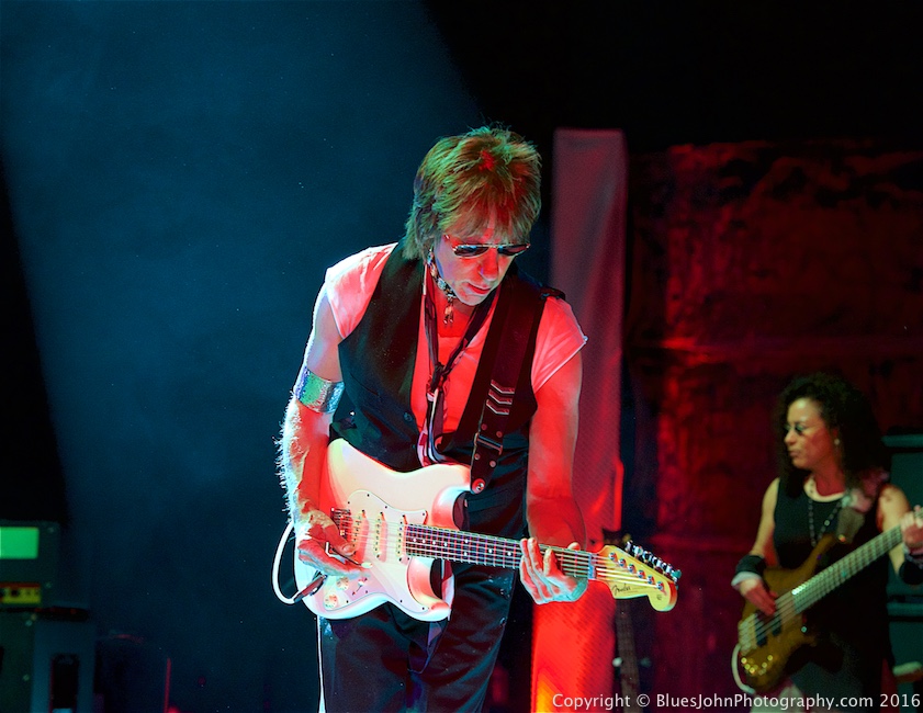 Next up was Jeff Beck—and I’m sure I heard him say, “Oh fuck, I have to follow that.” Beck opened his set with the hard rock of “The Revolution Will Be Televised,” the first track from his 2016 record Loud Hailer, which saw singer Rosie Bones on the megaphone out in the crowd and featured guitar player Carmen Vandenberg, two collaborators on his new album. Along with Jimmy Hall (of Wet Willie) on vocals, Rhonda Smith on bass, Jonathan Joseph on drums, and two newer band members, the lineup allowed Beck to perform one of the most diverse and career-spanning sets I’ve ever heard.